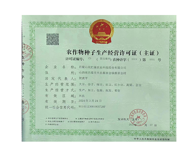 呂梁山花爛漫農業科技股份有限公司是山西省農業產業化重點龍頭企業,公司成立于2008年,法人代表賀虎平,注冊資本1000 萬元,現有員工 30 人。公司位于興縣蔡家會鎮蔡家會村建有占地面積1萬多平方米生產區和辦公區,年總加工雜糧能力達到4萬噸。擁有一套日精加工50噸谷子成套設備生產流水線;擁有一套日精加工30噸豆面、蕎面設備流水生產線;擁有一套日精加工50噸紅小豆、豇豆、綠豆、腎型黃豆、紅蕓豆設備流水生產線,2020年引進省農科院農產品加工研究所谷子精深加工技術,目前設計年產300噸的小米油加工一條龍生產線已經安裝調試完畢,產品經化驗達到國家一級油標準,并獲得兩項專利證書。主要產品有“山花爛漫”牌有機小米、綠色小米各種精美包裝系列;蔡家會村豇豆面、豌豆面等雜糧面、手搟豆面系列、以及有機精品雜糧系列。擁有“山花爛漫”山西省著名商標。公司采用線下和線上銷售相結合的營銷模式。